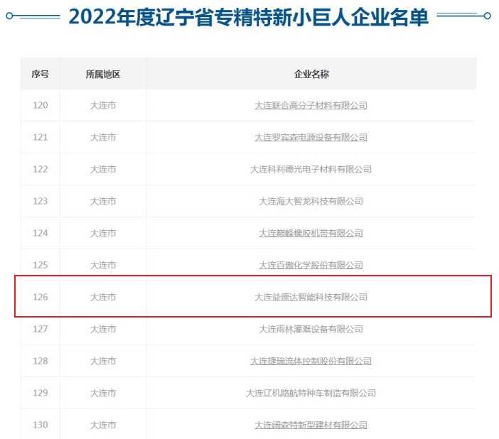 近日,大連益盛達智能科技有限公司憑借出色的綜合實力,榮獲2022年遼寧省專精特新“小巨人”企業稱號。